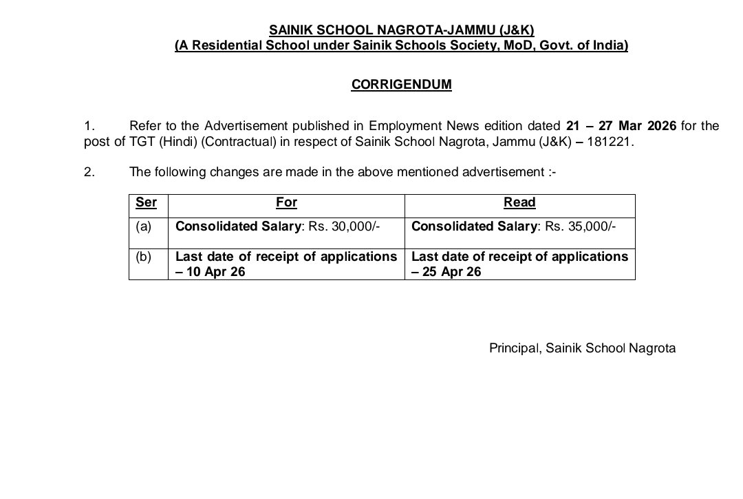 Corrigendum for the Post Of TGT Hindi(Contractual)